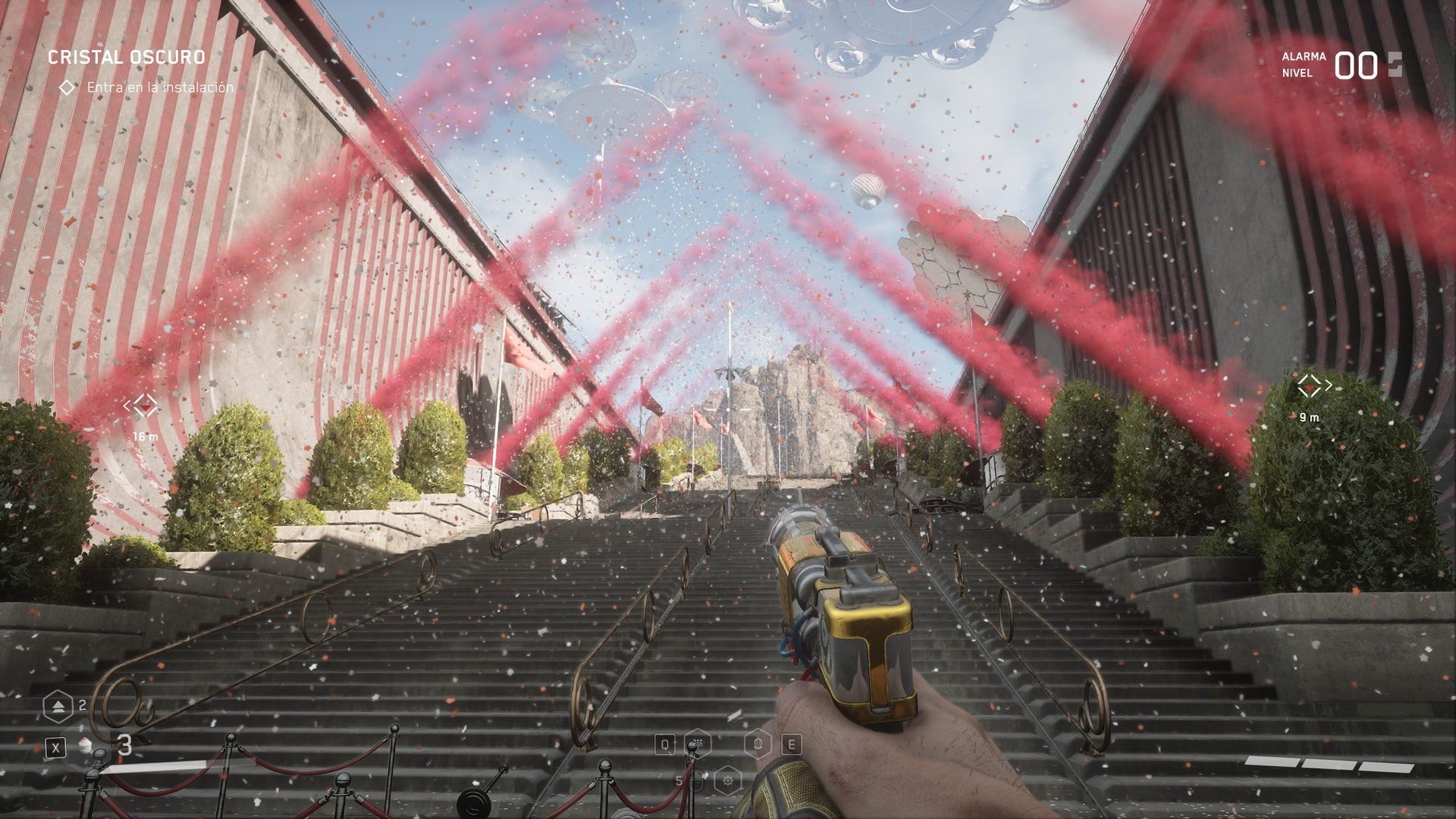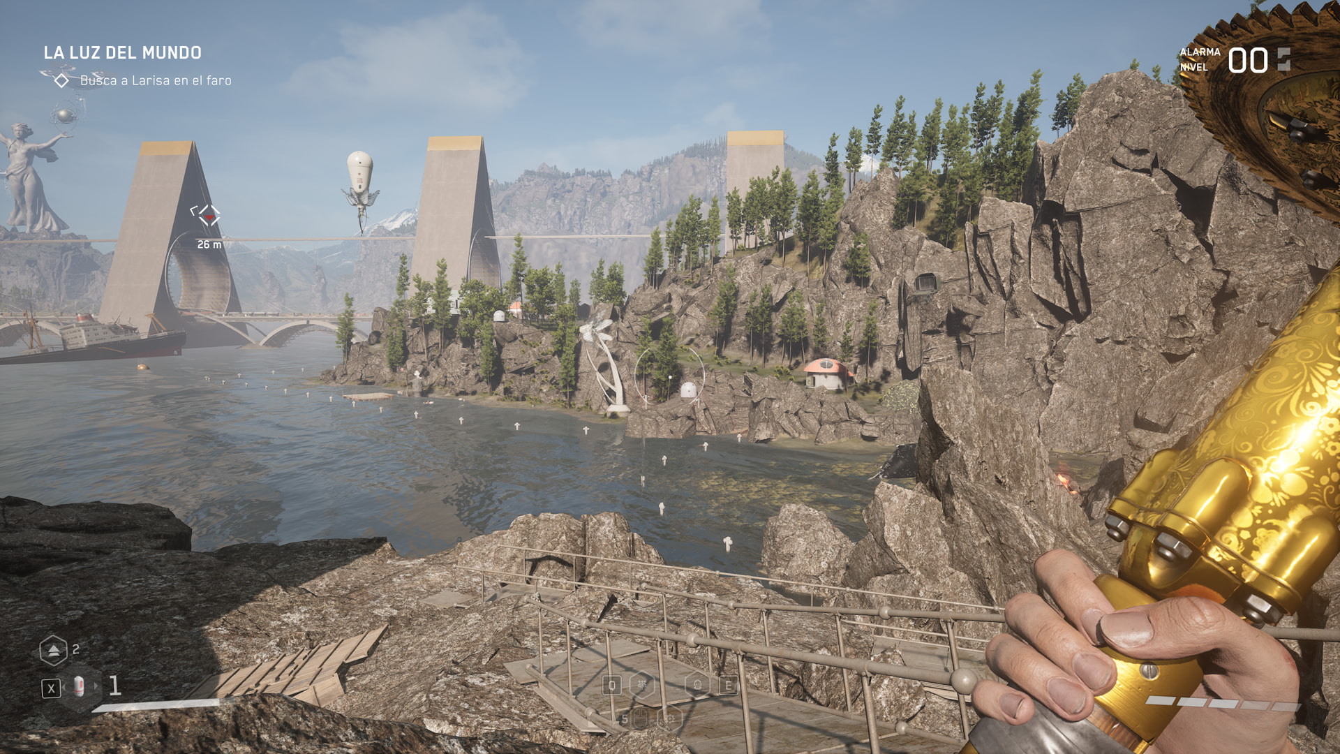 Gráficamente está muy bien, tiene un estilo artístico mezcla entre lo retro y lo futurista, destacando los espacios al aire libre y las megaconstrucciones, aunque puede que no sean los gráficos más top que te puedes encontrar, la cantidad de elementos y la calidad de las animaciones hacen que el mundo se sienta muy consistente, teniendo en cuenta que es un juego rápido que premia estar continuamente en movimiento durante el combate, sobre todo con los jefes, que hay unos cuantos y muy buenos, donde vas a fundir toda la munición, toda la energía y vas a tener que liarte a mamporrazos a la vez que corres y esquivas.