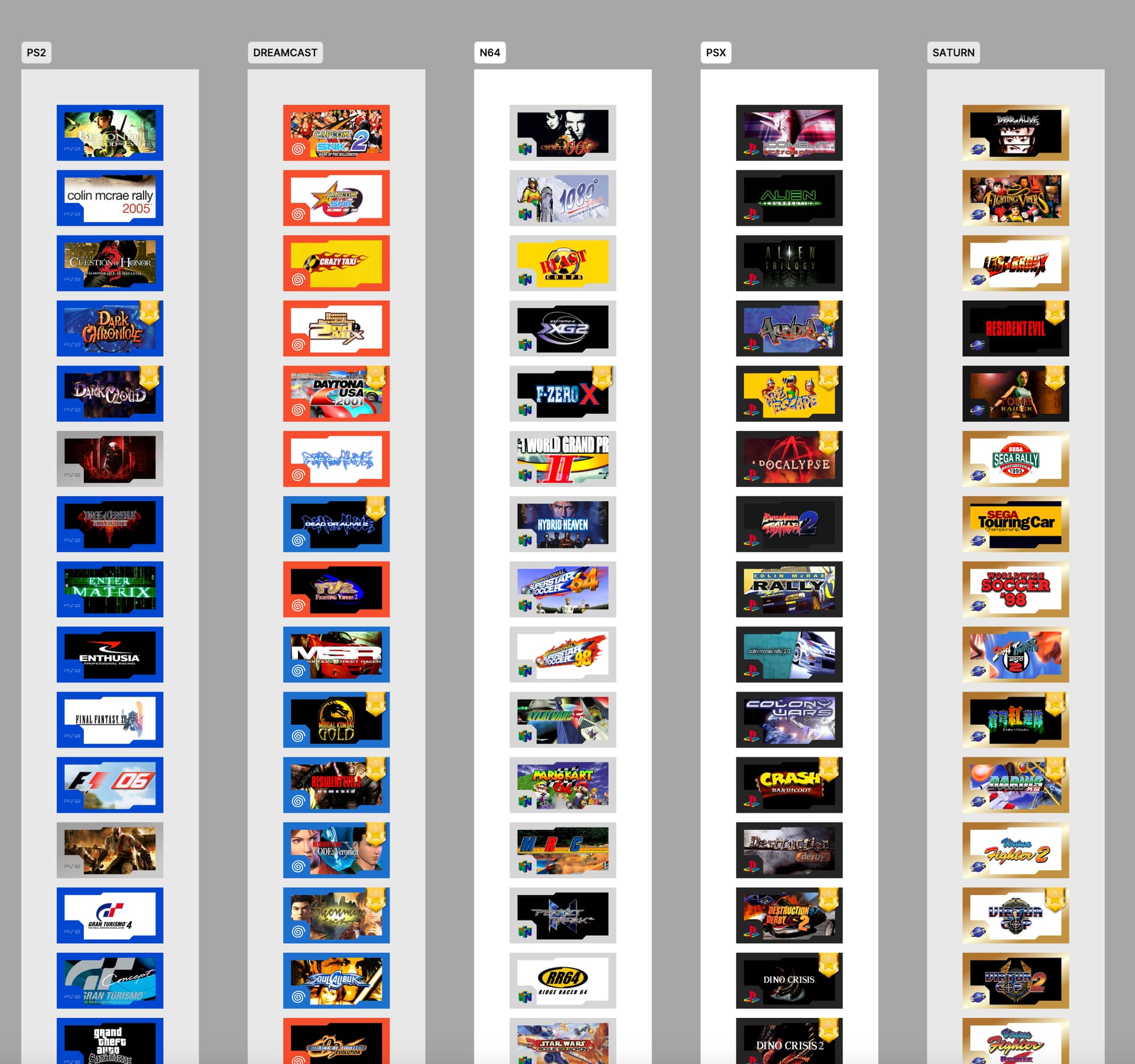 También la puedo visualizar a modo de columnas separadas por sistemas. He diseñado unas portadas diferentes para cada una y resaltado con una estrella el título que más se pueden revalorizar: