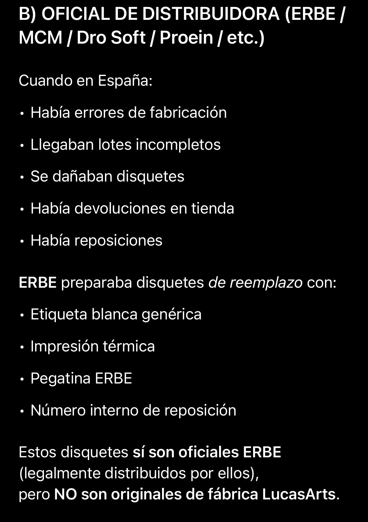 En cuanto a tu consulta, sí, Erbe en algunas ocasiones localizaba al español títulos que venían de EEUU u otros países. En muchas ocasiones sustituía disquetes por otros con su pegatina o metía manuales en blanco y negro junto al original en color. A esto podía incluir panfletos publicitarios con otros juegos que ellos distribuían. Realmente cada juego es un mundo y te animo a bichear mi canal o webs como clicky museum o nostalgia pixelada.