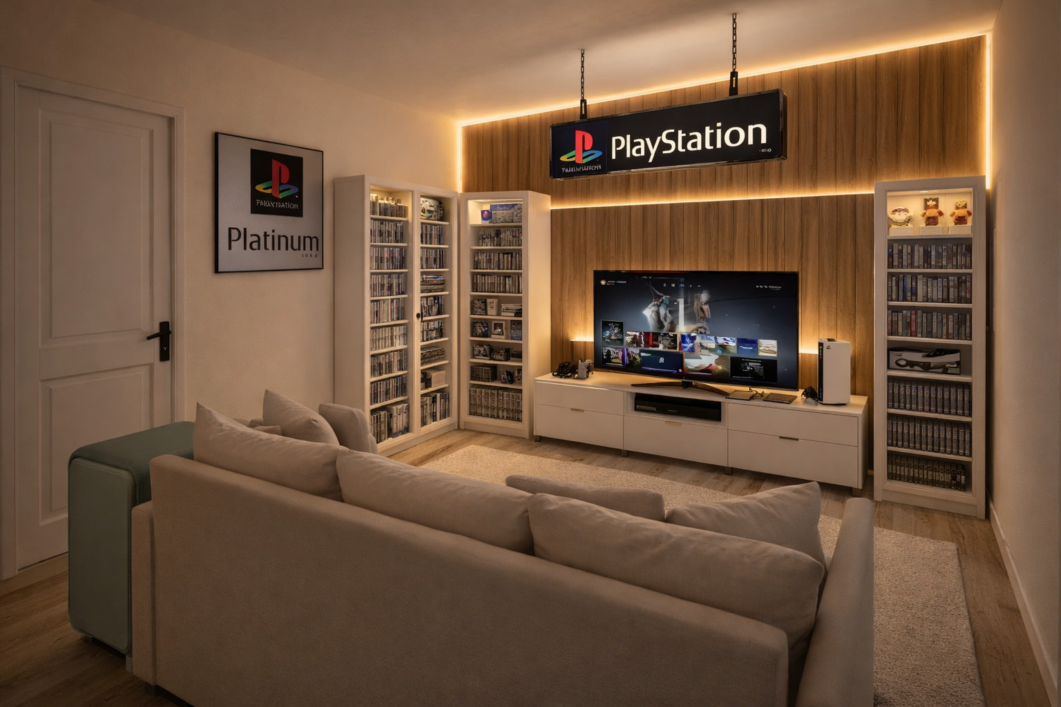 También en el lado derecho va una balda para meter los 15 juegos de mega que quiero tener. Y demás historias,… incluso el cartel de platinum estoy pensando en meterlo detrás del luminoso colgado de las maderas