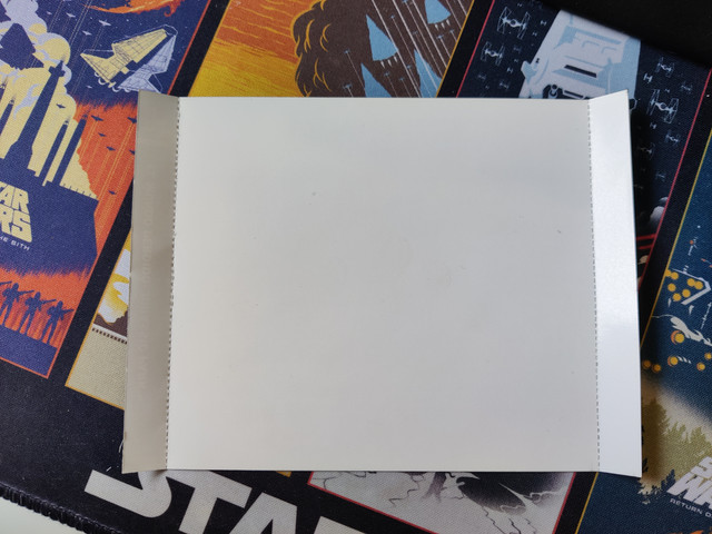 También la parte de atrás el troquelado no está bien e incluso uno de los bordes no llega al final el impreso.