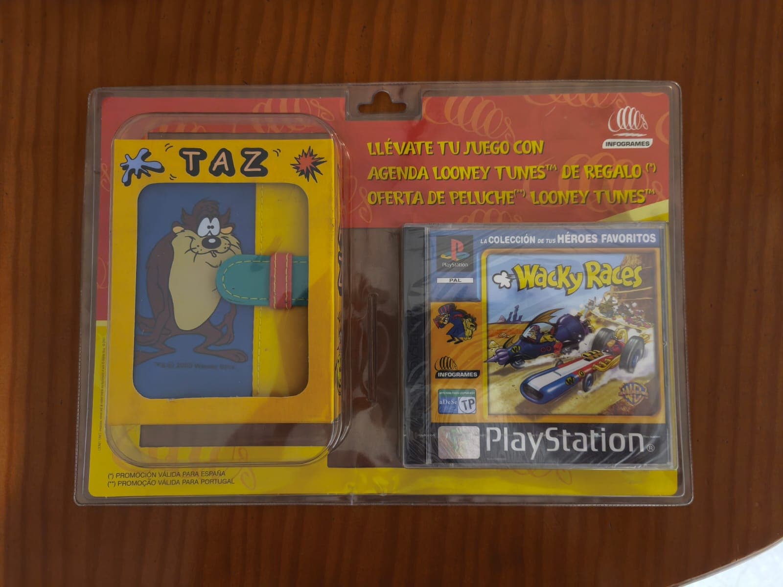 Buenas, tengo un juego Wacky Racers (PSX), el de los autos locos, es una edición PAL España/Portugal que sacaron con Blister la gente de Infogrames, y venia con una agenda de TAZ Mania de Regalo, no puedo saber el precio, no hay ninguno mas en internet para que pueda comparar de este pack.