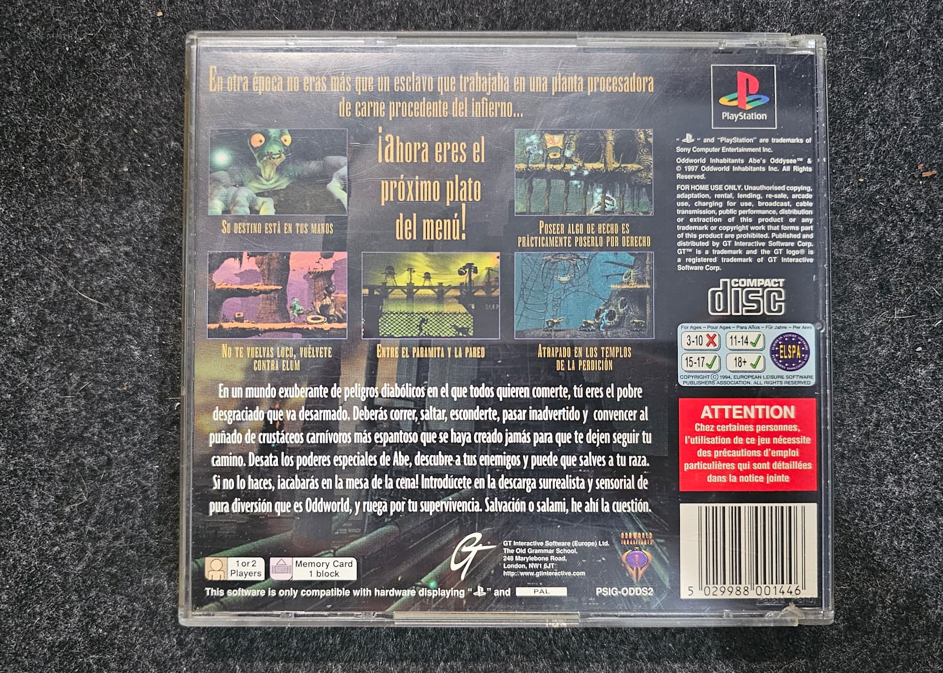 Pero bueno, como digo, por ese precio llevando todo aunque no esté perfectísimo, y mientras te sirva para jugar y no pegue saltos en cinemáticas, me parece una ganga, no es fácil dar con un Oddysee black label pal esp completo, así en general. Concretamente de este juego soy el mayor friki que hay en la faz de la tierra, así que créeme que sé lo que digo, me costó años encontrar la perfección. Pasaron 3 copias distintas por mis manos hasta dar con la definitiva…