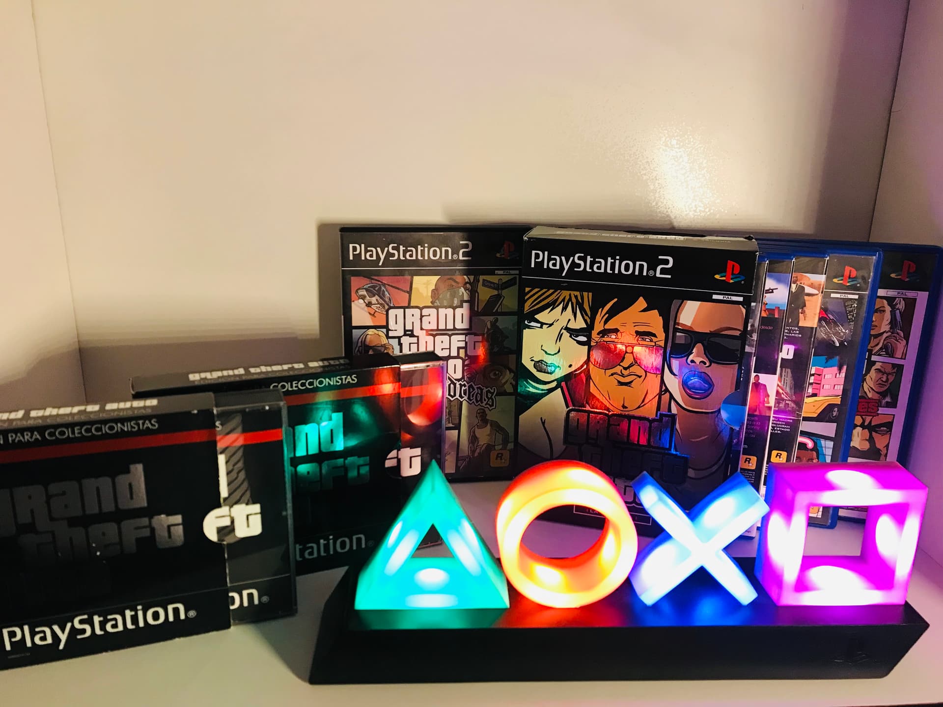 Hablo de Grand Theft Auto. Aquí os dejo con un par de ediciones coleccionista de GTA de PSx (con GTa, GTa2 y GTa London) , la edición de la Trilogía de PS2 (con GTa3, Vice City y San Andreas), aparte otro San Andreas extra (con una caratula diferente al de la trilogía), un Vice City stories y un Liberty City Stories. Todos completos con mapas y PAL esp.