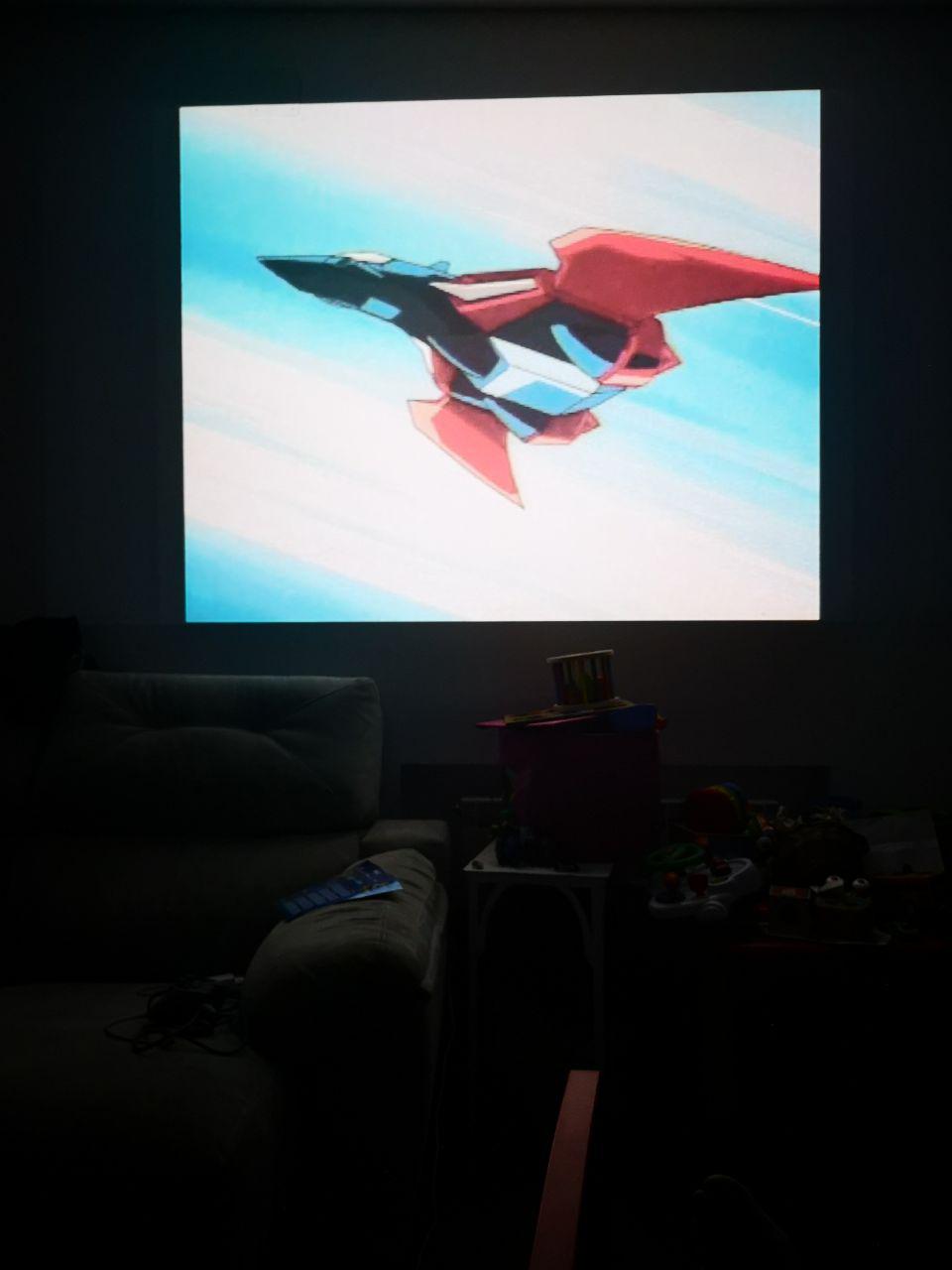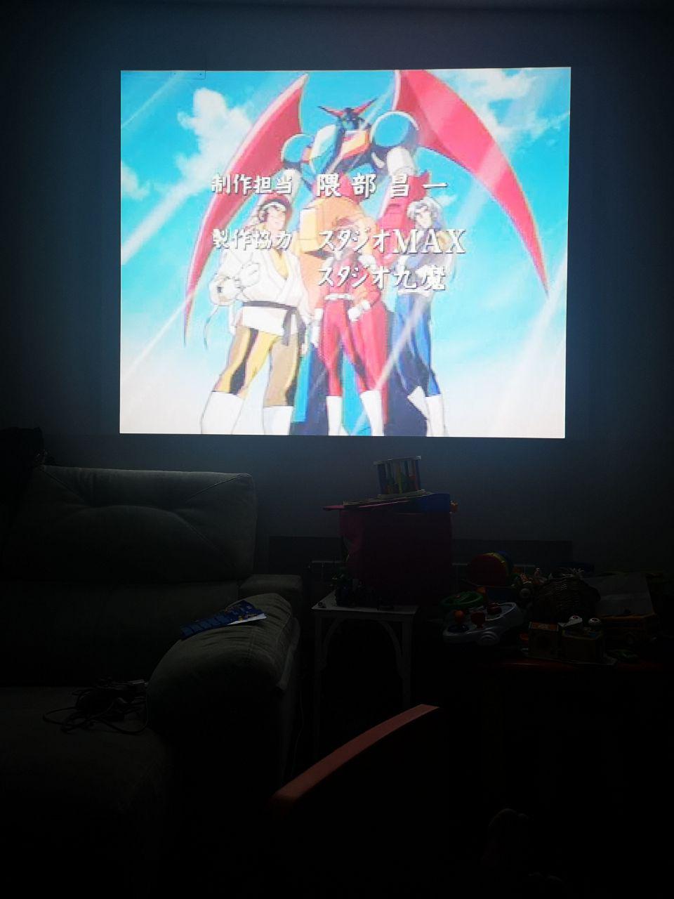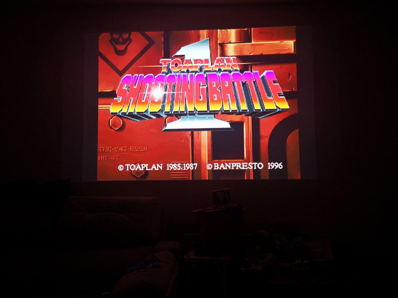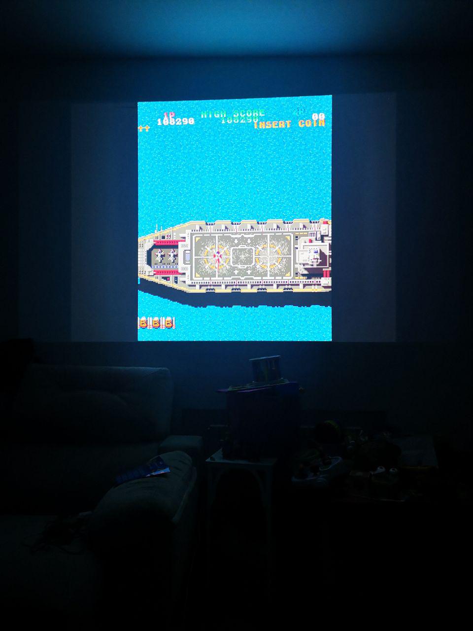 Es algo que me regaló mi pareja en las navidades de 2017-2018 y la verdad que lo encuentro una maravilla, sin ir más lejos la semana pasada estuve jugando al Toaplan Shooting Battle 1 y al Geppy-X con el proyector, te dejo unas fotos para que veas lo que podrás esperar: