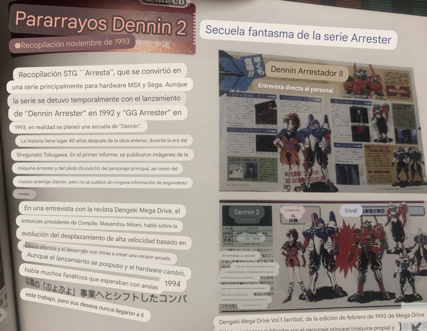 Date cuenta del detalle que la información está sacada de una revista oficial de Megadrive en Japón al presidente de la propia Compile.