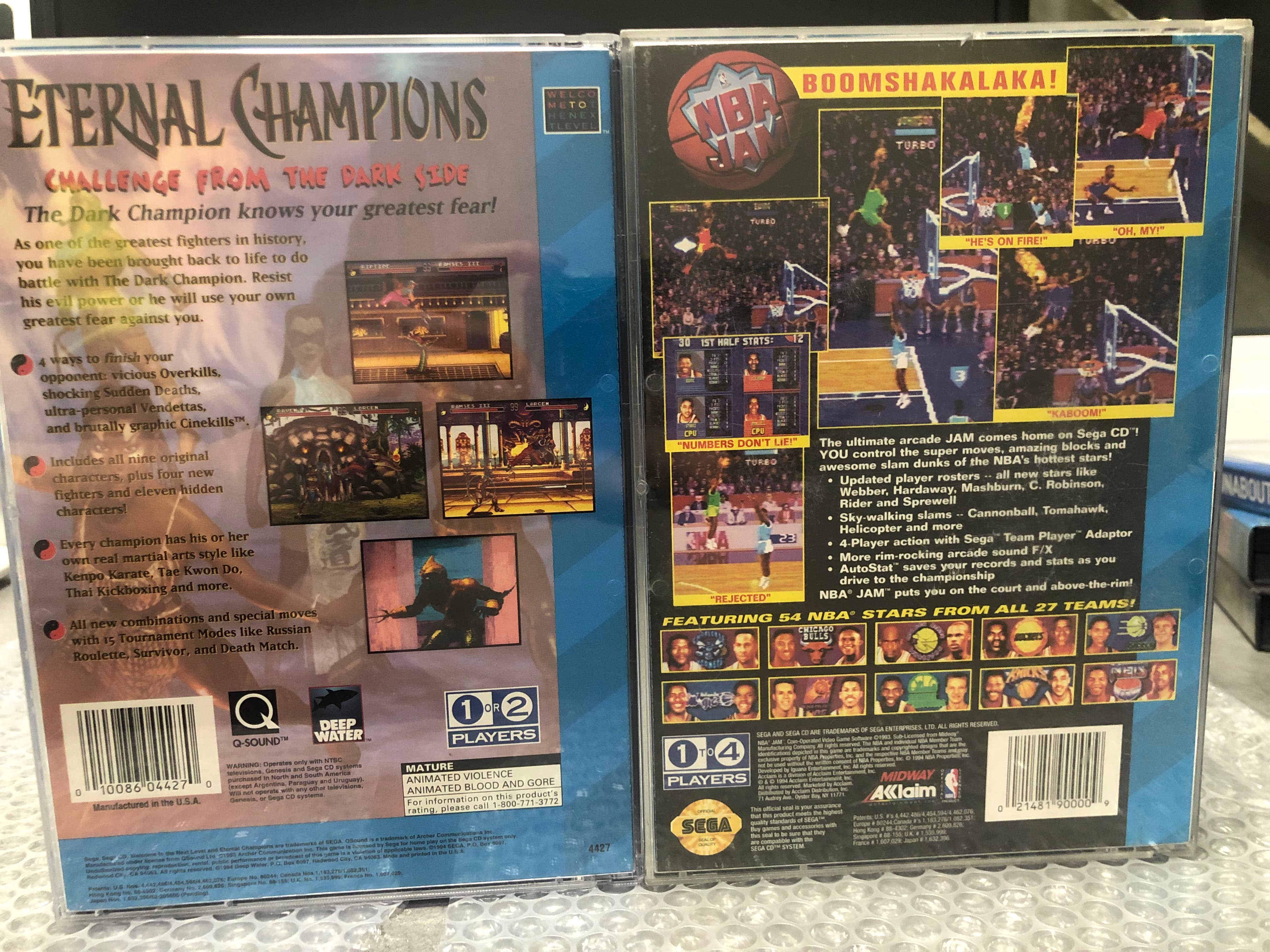 Y termino con otras dos aportaciones para el SegaCD con un excelente NBA Jam y Eternal Champions,este último llegué a pasármelo en su día cuando lo tuve en Pal,me pareció y me sigue pareciendo un buen juego de lucha y mejoró bastante el original de Megadrive,que flojeaba bastante sobretodo en la jugabilidad.