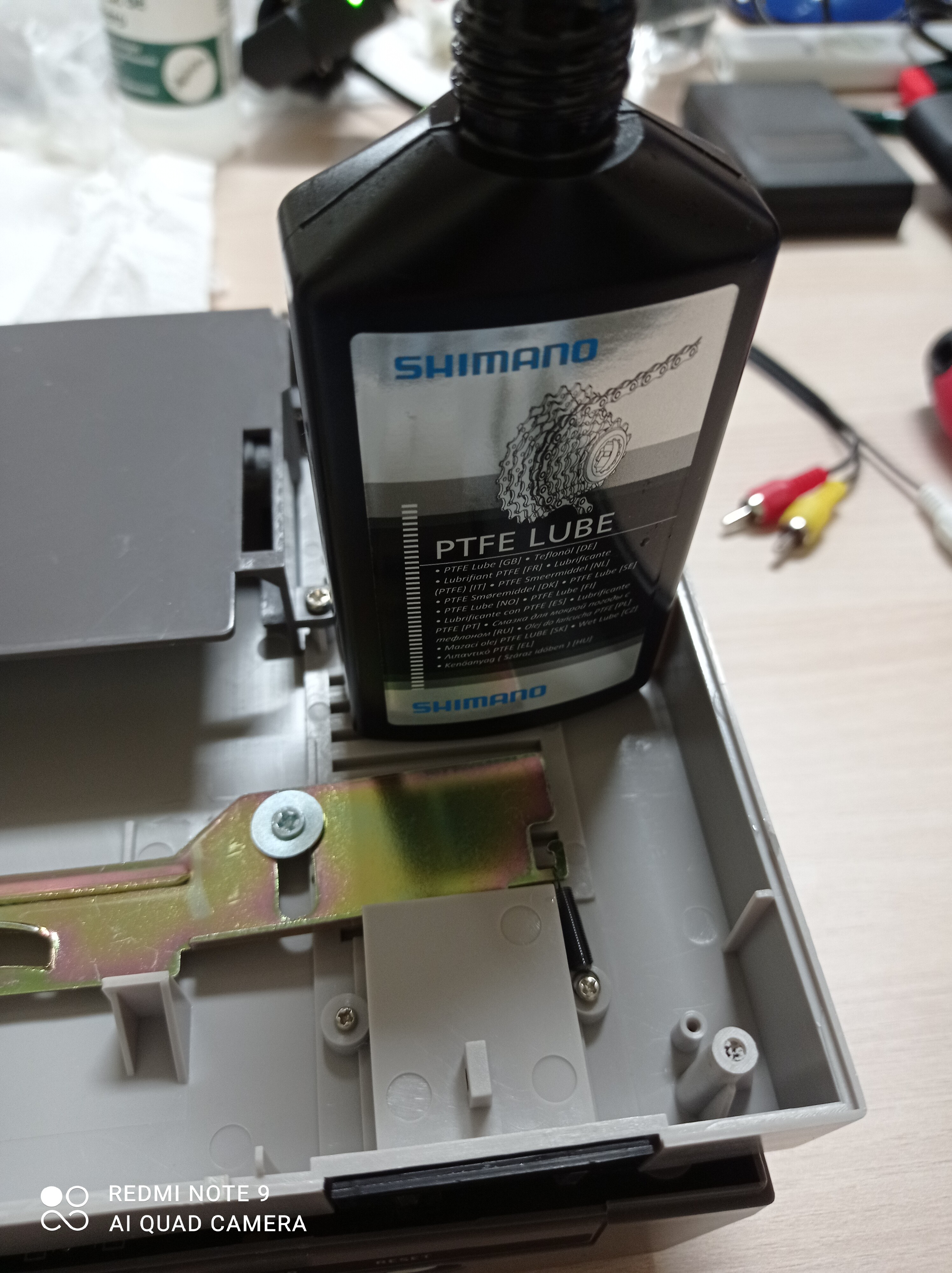 Ahora vamos a engrasar muelles etc… Para evitar oxidos, este aceite de cadena de bici es buenísimo, el que sea ciclista como yo, lo sabe.