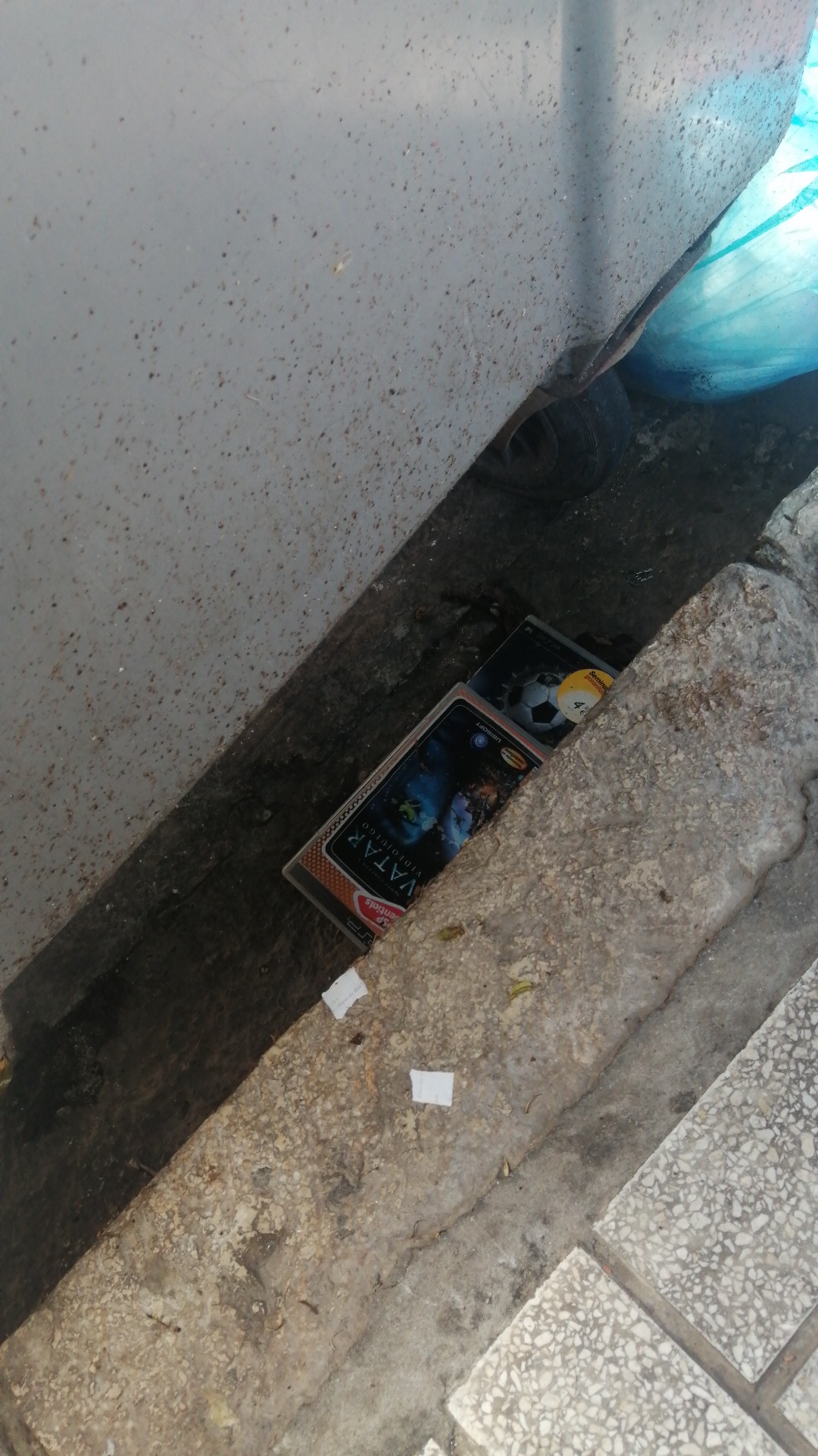 Cómo veis, son 3 juegos de PSP. Decir que ni los toqué. Estaba en un sitio con un peste a basura que tiraba para atrás, estaban mojados de la lluvia y de la propia basura. Aparte estaban mugrientos y llenos de la propia basura.