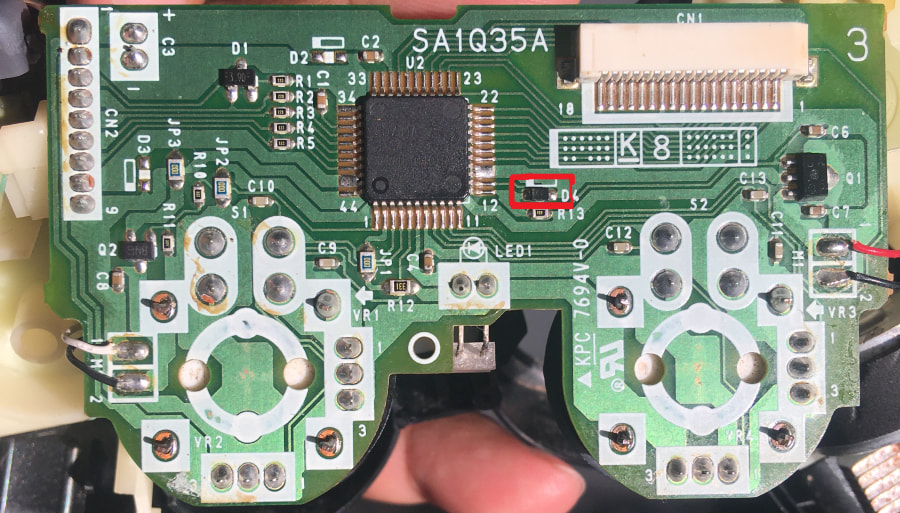Necesito ayuda con mi control, creí que era un problema común del flex ya que no reaccionaba y después de comprar uno y ver que no fue el caso, me puse a experimentar con el cable, pero con el tester me dí cuenta que funcionaba todo, creí que era un cable cortado y lo fui moviendo de posición. Sin querer toque la placa, y ahí es cuando sentí calor, creí que era el chip principal pero lo deje un rato conectado y dí con ese chip caliente que dice D4. Alguien sabe como repararlo/cambiarlo y cual es su valor, creo con mis pocos conocimientos de electrónica que es un diodo, es un control ps2 Tipo “A“.
