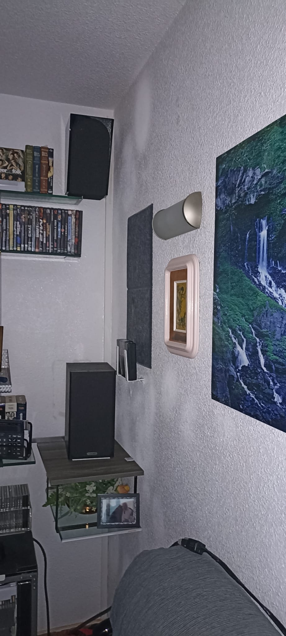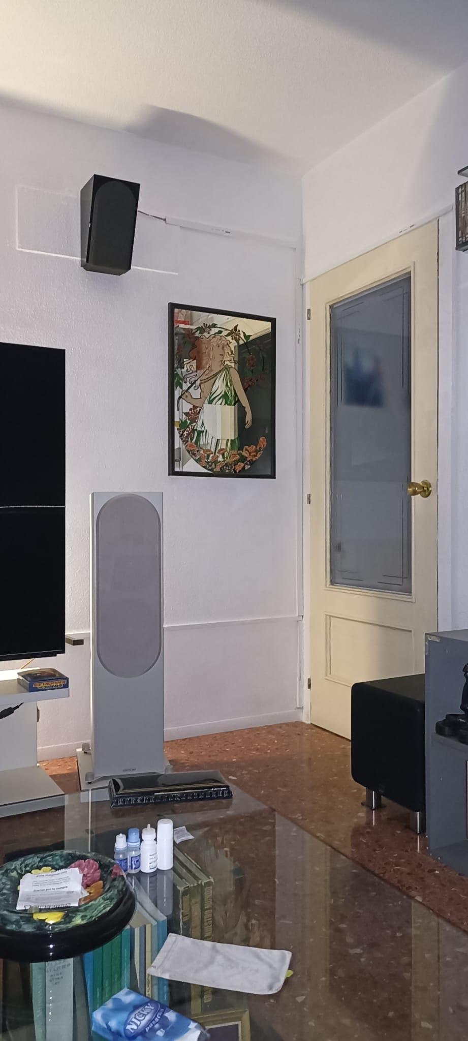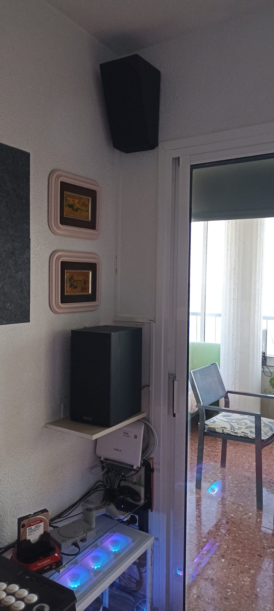 Al realizar la redistribución del salón insonoricé todo el frontal, y aquí, en estas últimas fotos la parte trasera izquierda, también con sus canales de efectos y Atmos de altura.