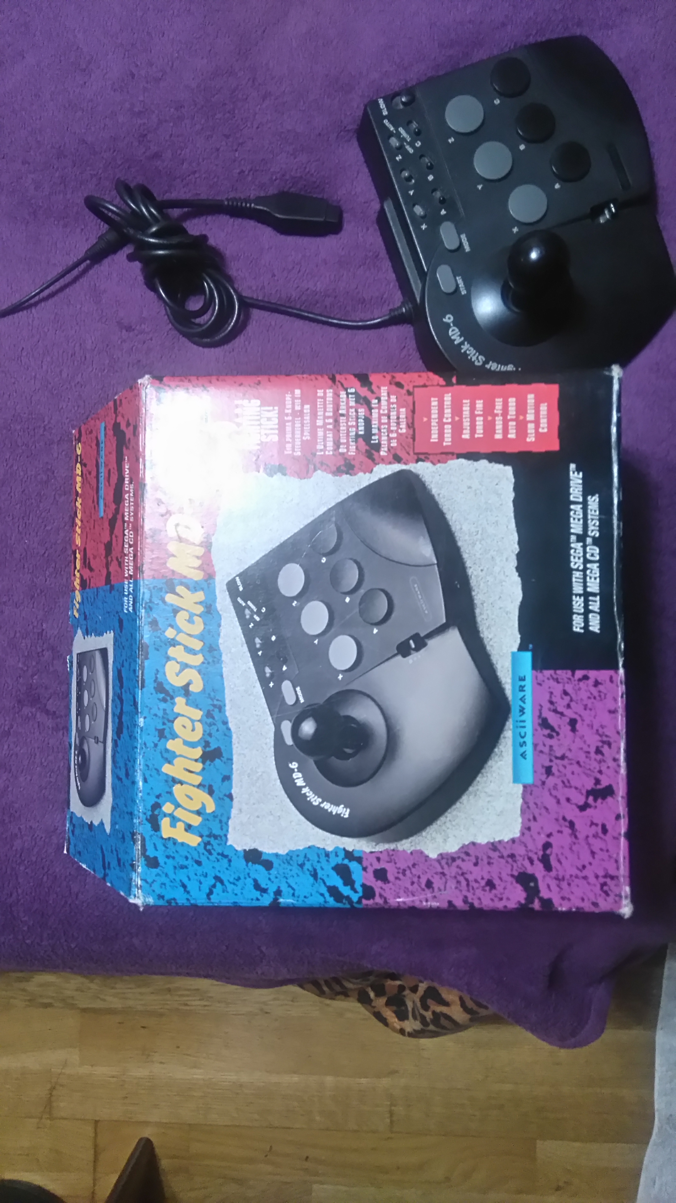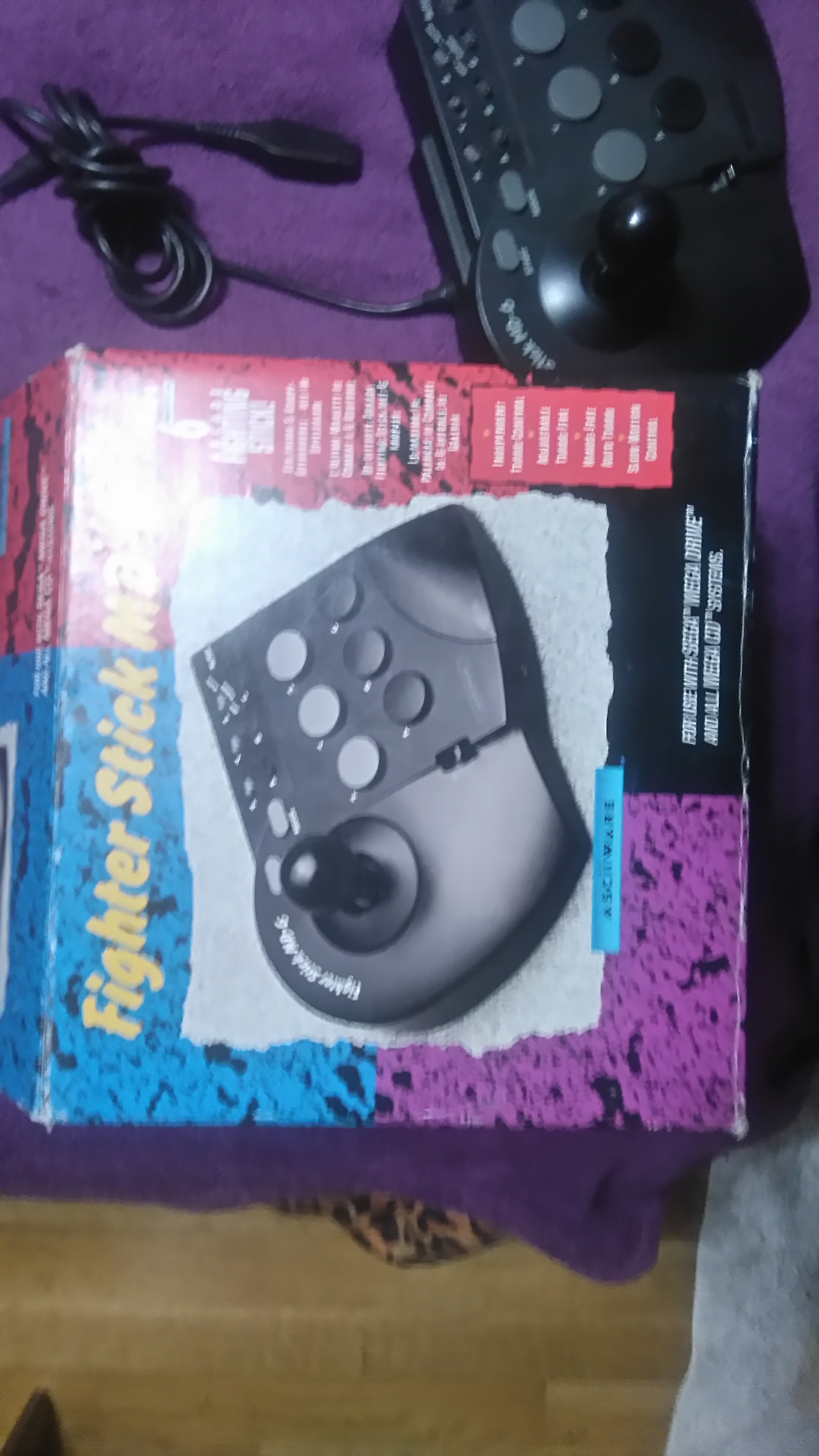 -Mando “Fighter Stick MD-6” (para megadrive) con caja, pero sin instrucciones ni el embalaje interior original. 45€