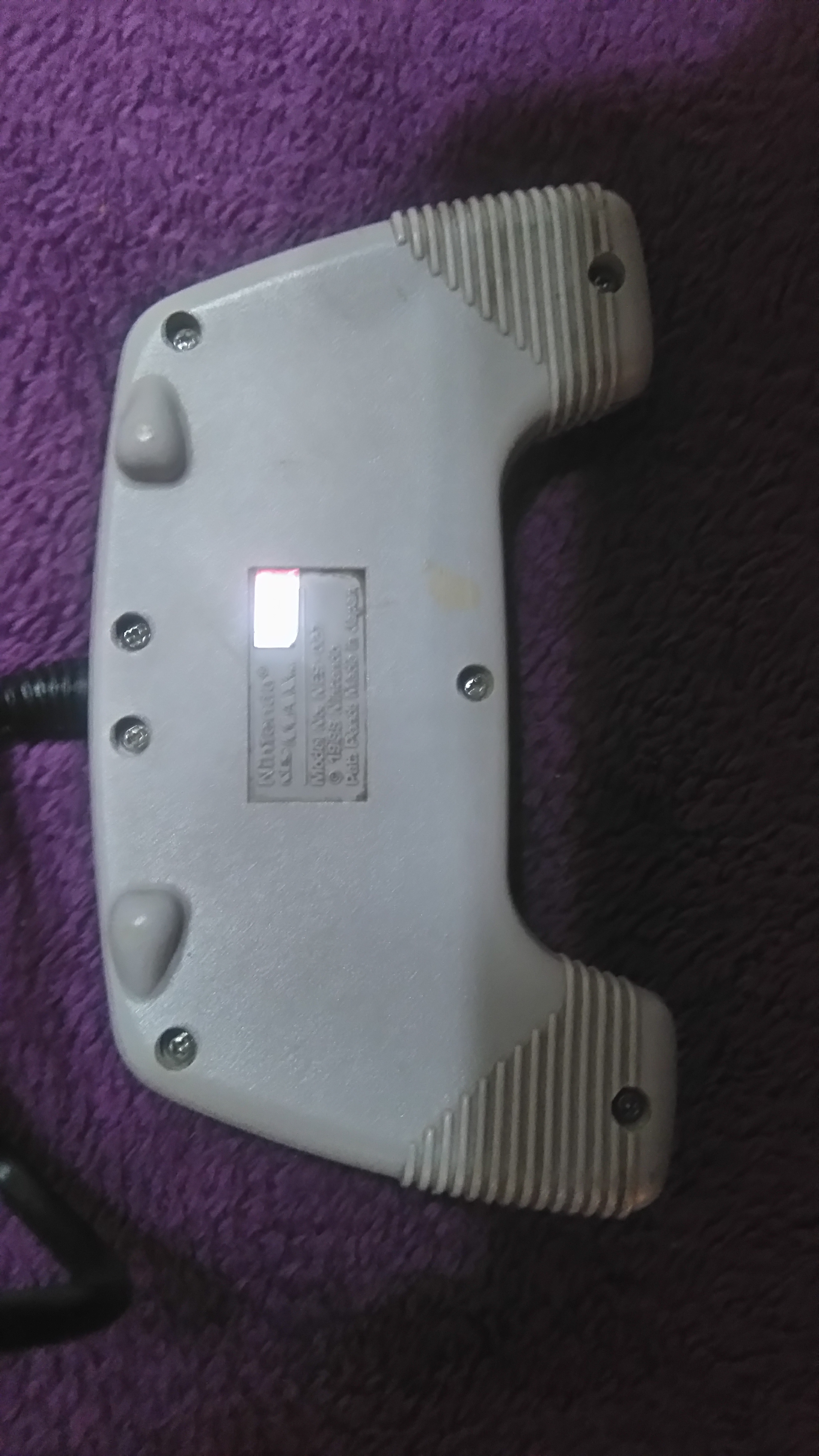el mando tiene golpes por todas partes pero no esta “desgastado”, las almohadillas interiores han sido cambiadas por piezas no originales de nintendo pero que hacen que tenga el tacto original y el boton A es amarillo (mi padre en aquel entonces compraba mandos por 500 pelas y me arreglaba el mando mio con los repuestos de desmontar dichos mandos porque eran mas baratos que los originales) 80 €