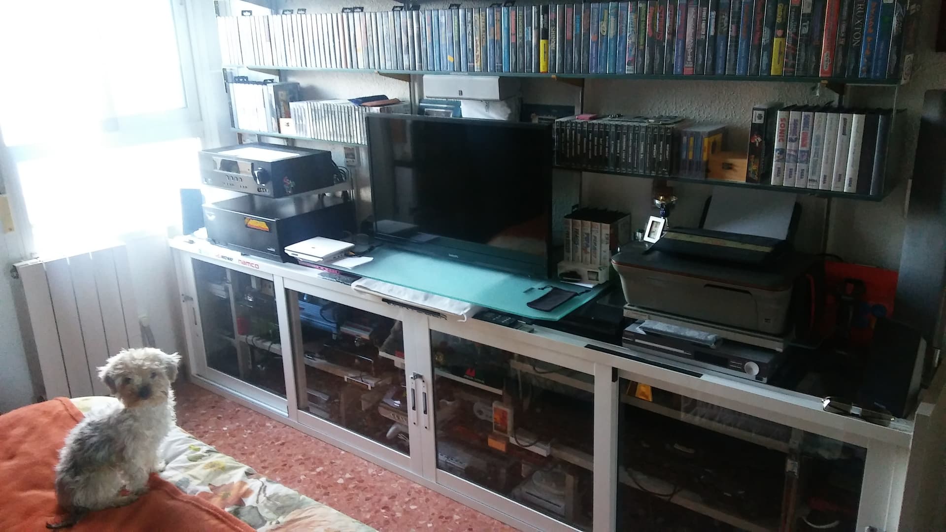 A ver @Retromonigote , si quieres ver la colección y evitar cierta decoloración de la carátulas que la compone puedes optar por las láminas tintadas como las que se añaden en las lunas de los coches, o bien como resultado más limpio pero gastando cierto importe mandar cortar a medida esos cristales ya de por sí tintados para sustituir los transparentes.